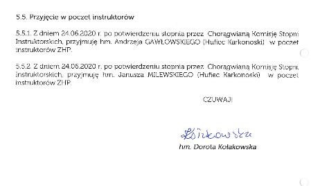 Zweryfikowani harcmistrzowie:Janusz Milewski i Andrzej Gawłowski