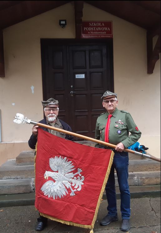 30 września 2020r przedstawiciele Komisji historycznej Karkonoskiego Hufca ZHP - hm.Janusz Milewski i hm.Andrzej Gawłowski spotkali się z Dyrektorem Szkoły Podstawowej w Mysłakowicach mgrAndrzejem Dąbkiem w celu przejęcia i przekazanie do zbiorów Komisji Historycznej sztandaru dawnego Gminnego Związku Drużyn ZHP o treści: „Związek Harcerstwa Polskiego/Gminny Związek Drużyn/Mysłakowice”.Podczas sympatycznego spotkania zapadła decyzja o przekazaniu Komisji Historycznej owego sztandaru. Serdecznie dziękujemy Panu Dyrektorowi mgr.Andrzejowi Dąbkowi za ten gest.Poniżej kilka fotek.Szczegółowy opis sztandaru znajduje się na nasze stronie w zakładce Sztandary-Sztandar Gminnego Związku Drużyn Mysłakowice