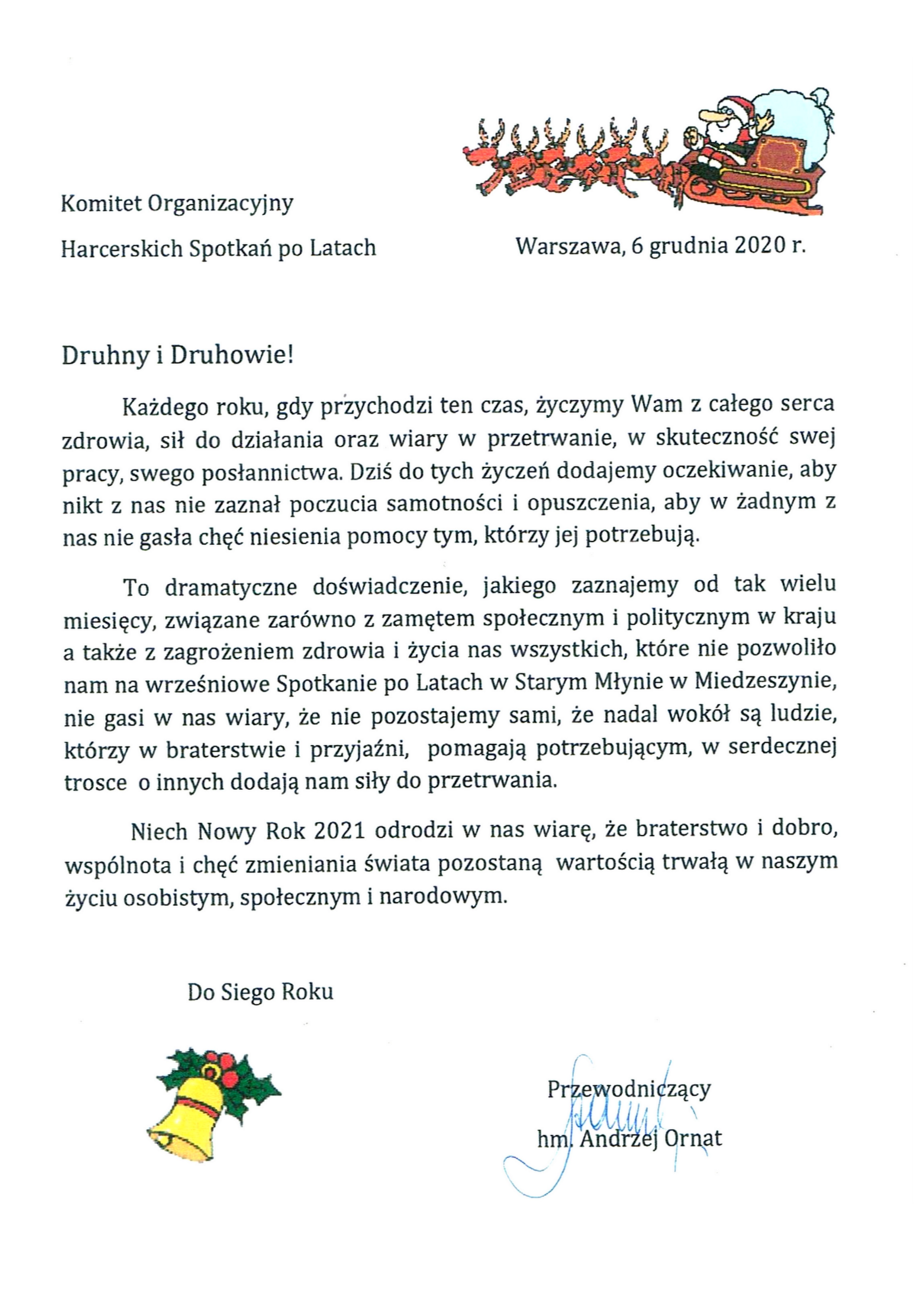 List z życzeniami otrzymaliśmy również od Przewodniczącego Komitetu Organizacyjnego Harcerskie Spotkania po Latach druha hm. Andrzeja Ornata (były Naczelnik Głównej Kwatery ZHP)