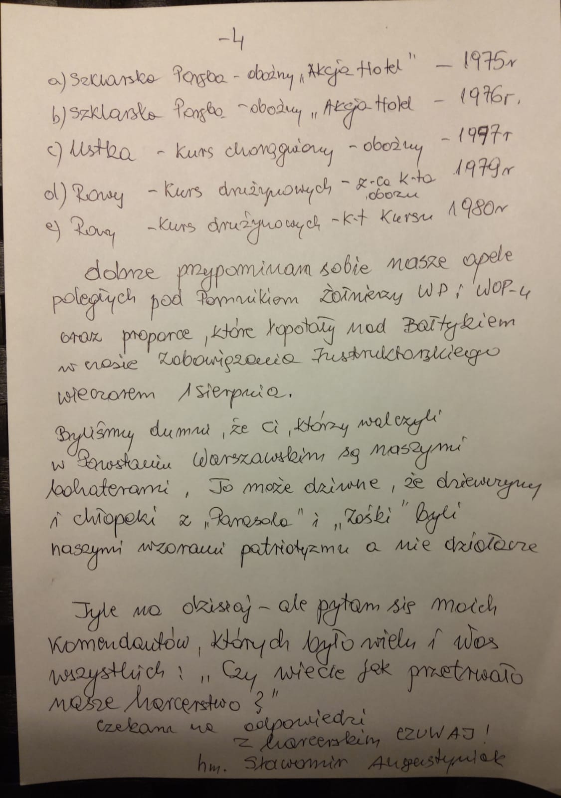 Wczoraj dotarła do mnie sympatyczna przesyłka od dh.hm.Sławka Augustyniaka.Tekst o jego przemyśleniach pracy w ZHP w nawiązaniu do historii rodzinnej i rocznicy wybuchu powstania warszawskiego.Trudny tekst być może kontrowersyjny emigranta polskiego początku lat 80- tych,który po 40 latach wraca czynnie do Polski do koleżanek i kolegów z ZHP,by odzyskać utracony czas i okiem emigranta ocenić miniony okres pracy w ZHP.