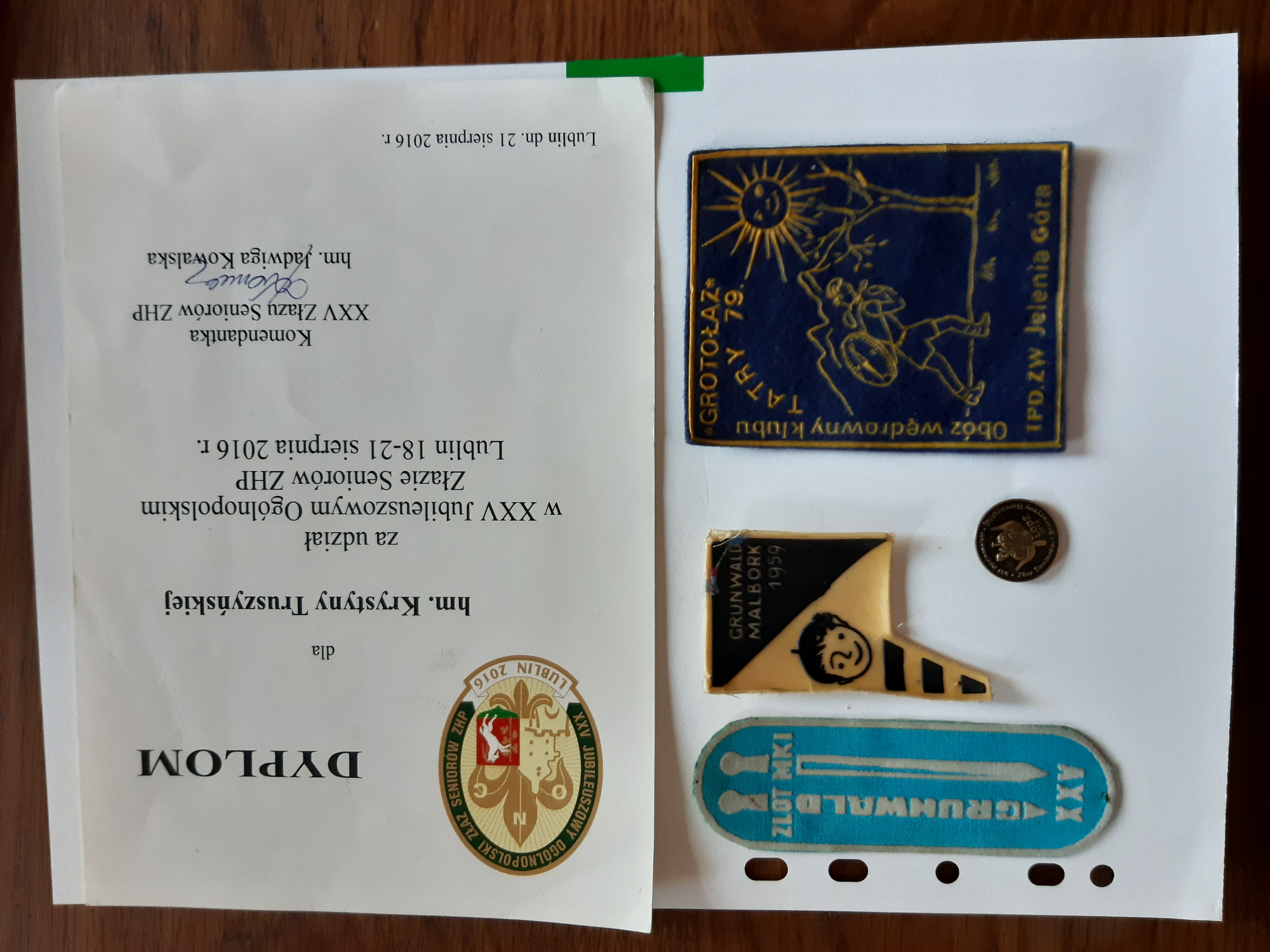 Dotarła do mnie kolejna partia artefaktów w tym sporo informacji i dokumentów dh.hm.PL Kazimierza Truszczyńskiego oraz sporo materiałów programowych i odznak ,materiałów związanych z turystyką,śpiewników i proporczyków nie tylko związanych z harcerstwem.Nad uporządkowaniem i przygotowaniem ich do prezentacji pracujemy dzielnie z dh.Janiną Kamińską.