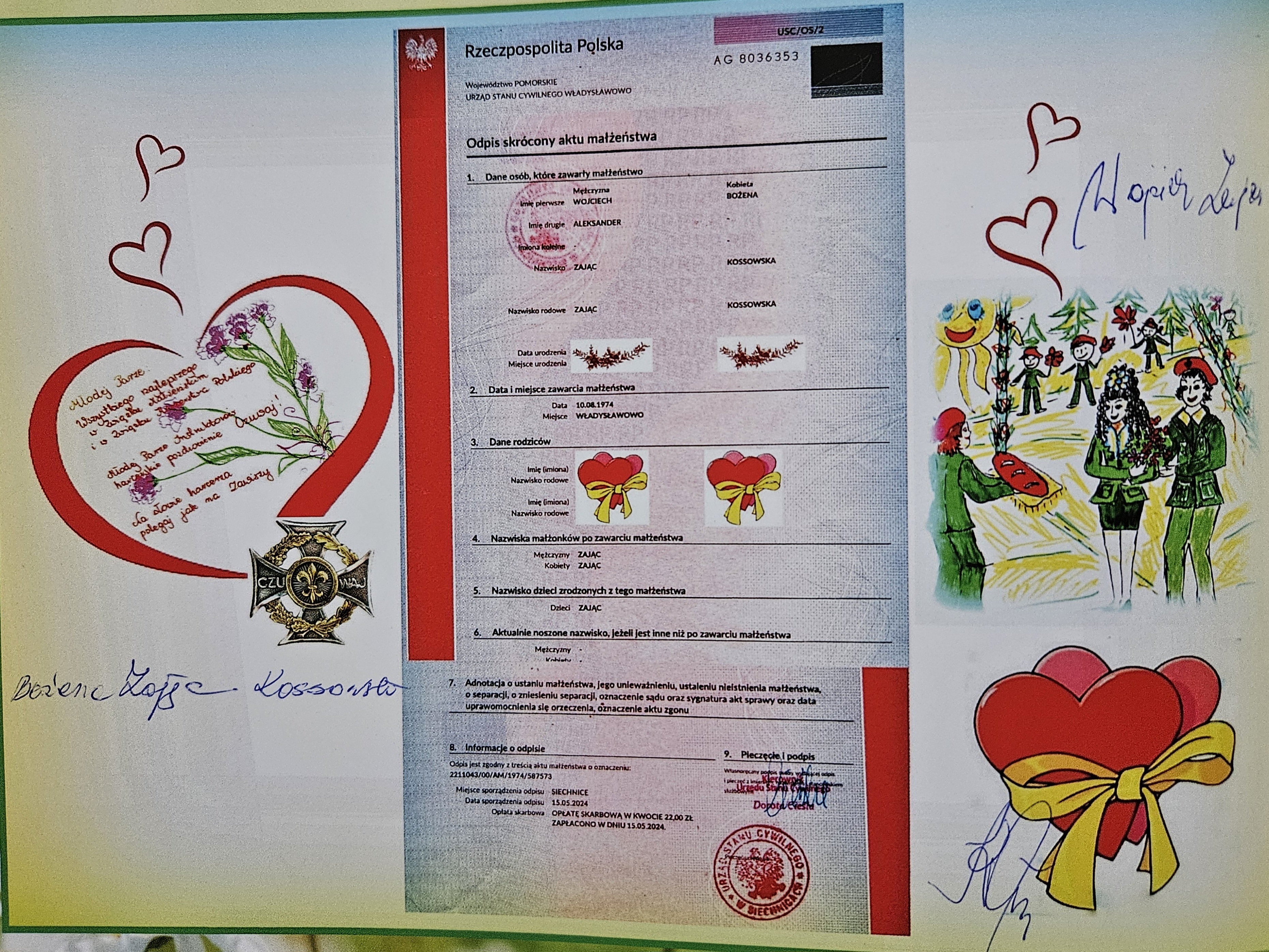 No i jest potwierdzony własnoręcznymi podpisami akt ślubu po 50 latach w obecności dh.hm.Jana Kiełbowskiego i hm. Andrzeja Gawłowskiego