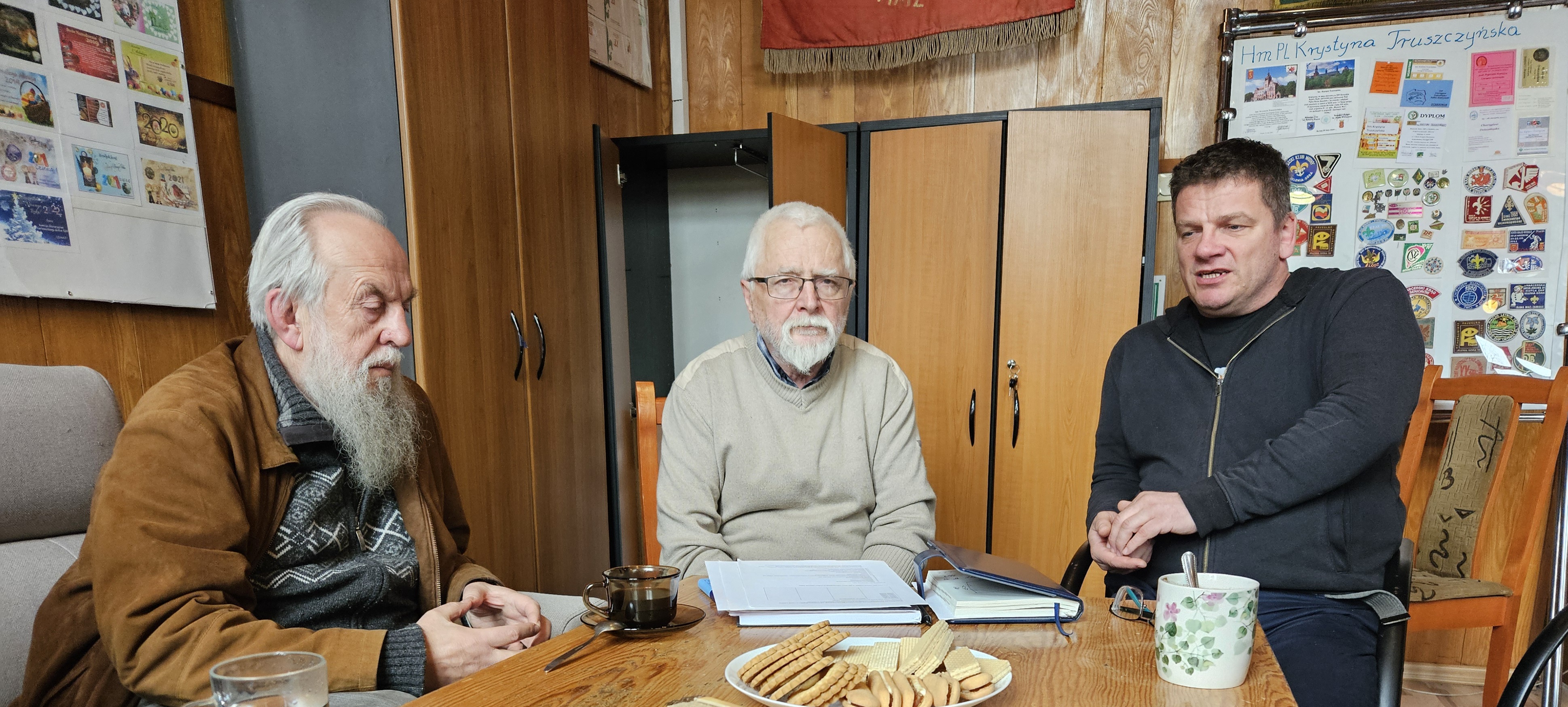 W środę na zaproszenie Komisji Historycznej Karkonoskiego Hufca ZHP do sali tradycji przybyło kilka zacnych osób: hm Mirosław Urbaniak pierwszy komendant Jeleniogórskiej Chorągwi ZHP,hm Jan Kiełbowski drugi w kolejności Komendant Jeleniogórskiej Chorągwi ZHP,hm Janusz Turakiewicz czwarty Komendant  Jeleniogórskiej Chorągwi ZHP,hm Elżbieta Kotlarska z-ca Komendanta Jeleniogorskiej Chorągwi ZHP,hm Robert Zapora Komendant Karkonoskiego Hufca ZHP oraz hm Janina Kamińska ,hmTomasz Tomala i hm Andrzej Gawłowski - Komisja Historyczna.