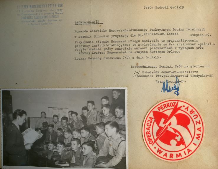 Siedzę w domu i porządkuję artefakty z historii ZHP.Natrafiłem na mój zbiór z lat 80-tych o 19 drużynie lotnioczej i Klubie Lotnika Śmigiełko.W lutym minęły już dwa lata jak pożegnaliśmy dh.Hm.PL Konrada Mieczkowskiego.Mietka wszyscy wspominamy z sentymentm.Warto pamiętać o jego wychowankach i jego pracy.Poniżej trochę wspomnień o nim i harcerstwie z jego życia.Zachęcam do lektury i poszperania w przepastnych szufladach -poszukania ciekawych fotek,dokumentów z Twojej działalności harcerskiej mój czytelniku.A potem proszę o kontakt by ocalić od zapomnienia-czekam.