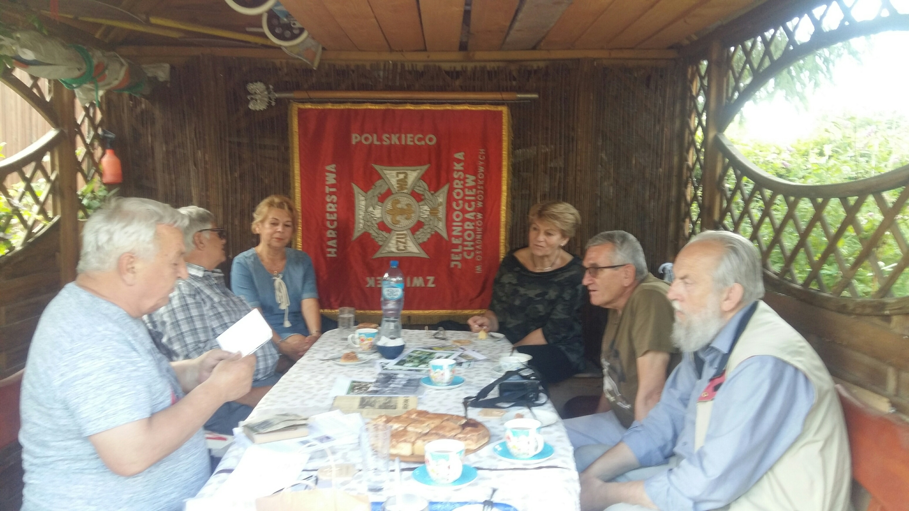 W spotkaniu uczestniczyli: Mirosław Urbaniak ,Jan Kiełbowski,Janusz Turakiewicz byli Komendanci oraz Brarbara Dygdałowicz Guc była kierowniczka wydziału zuchowego,Aleksandra Tunikowska Z-ca Komendanta Chorągwi oraz Adam Solarz,Janusz Milewski i Andrzej Gawłowski byli Komendanci Hufca Jelenia Góra i Monika Gawłowska instruktor Hufca Jelenia Góra.W/w uczestniczyli w spotkaniu w ramach akcji ocalić od zapomnienia.Wszyscy zgodnie uczcili obecność sztandaru Jeleniogórskiej Chorągwi ZHP udostępnionego przez Komendanta Karkonoskiego Hufca ZHP dh.Roberta Zaporę.Spotkanie odbyło się przy fińskim ognisku które gawędą rozpoczął dh. Jan Kiełbowski.Uczestnicy spotkania otrzymali od dh.Adama Solarza autorskie wydawnictwa a Andrzej Gawłowski wręczył uczestnikom pamiątkowe plakietki.Zespół przystąpił do systematycznej pracy zebrać i zabezpieczyć materiały z historii Jeleniogórskiej Chorągwi ZHP.Więcej o spotkaniu za kilka dni.Czytelniku jeżeli posiadasz wiedzę,materiały na ten temat kontaktuj się z nami.