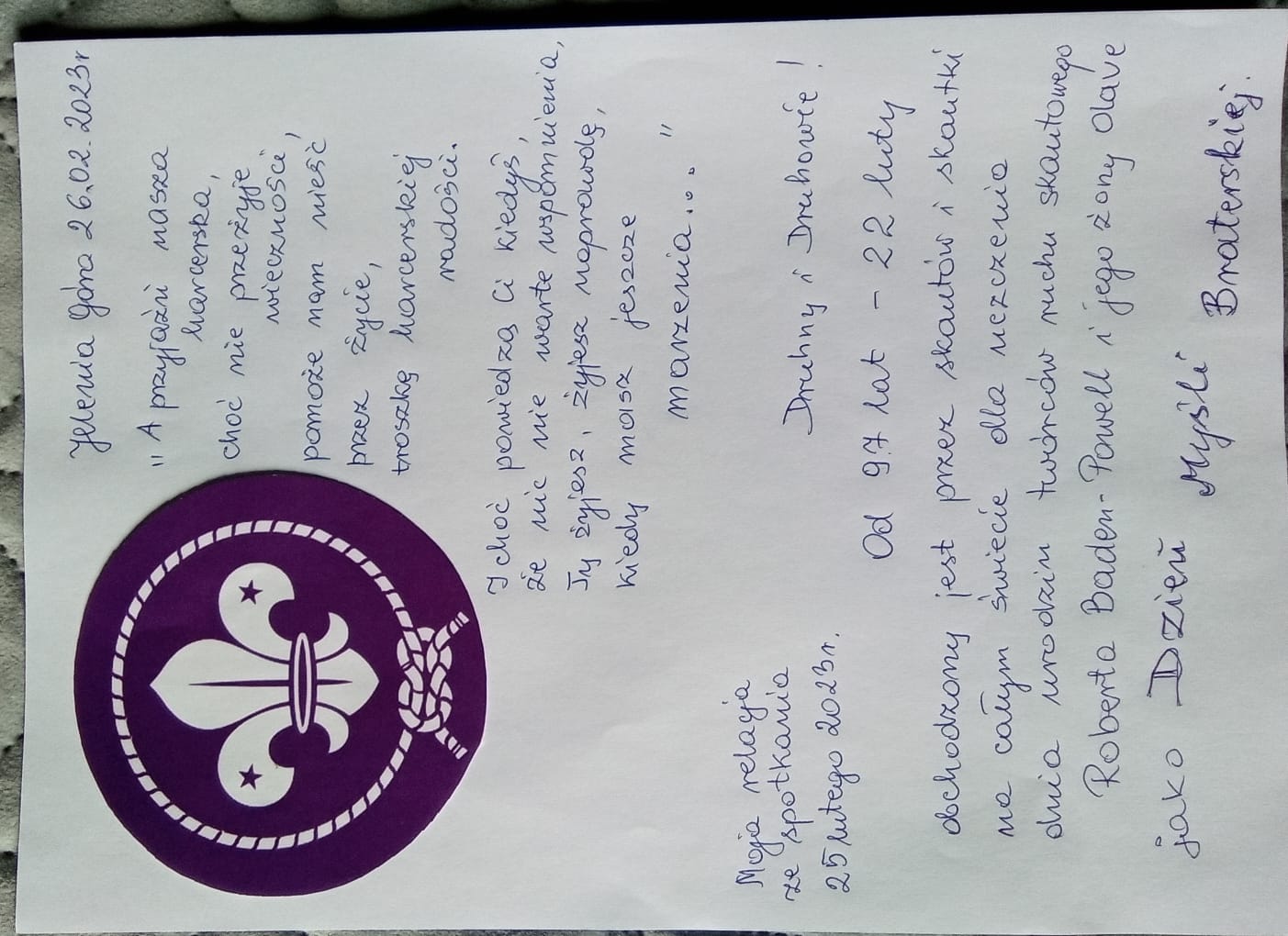 O tej kartce zainteresowani poczytają w innych art.na naszej stronie - nawiązującej do prawa i przyrzeczenia harcerskiego.