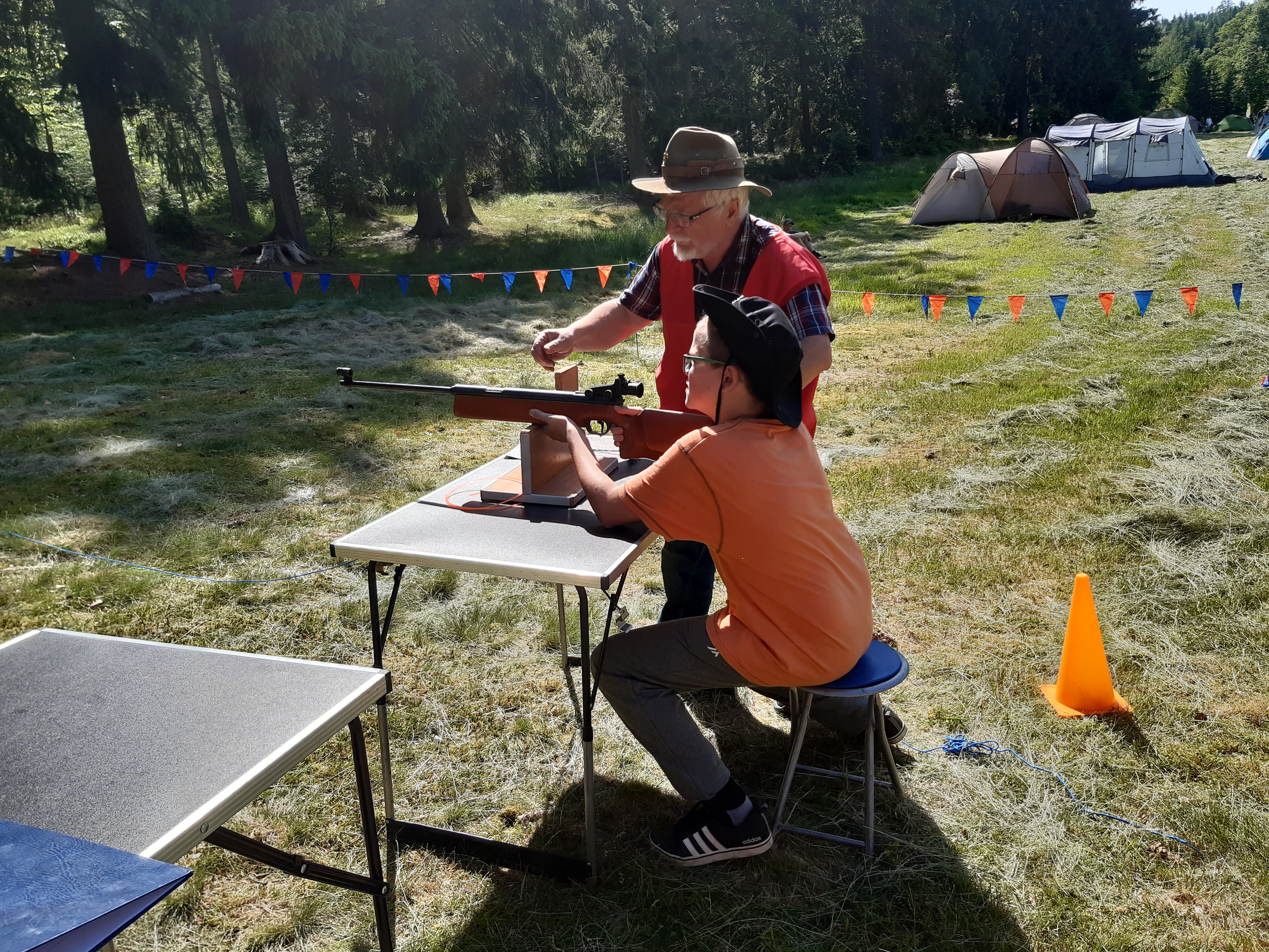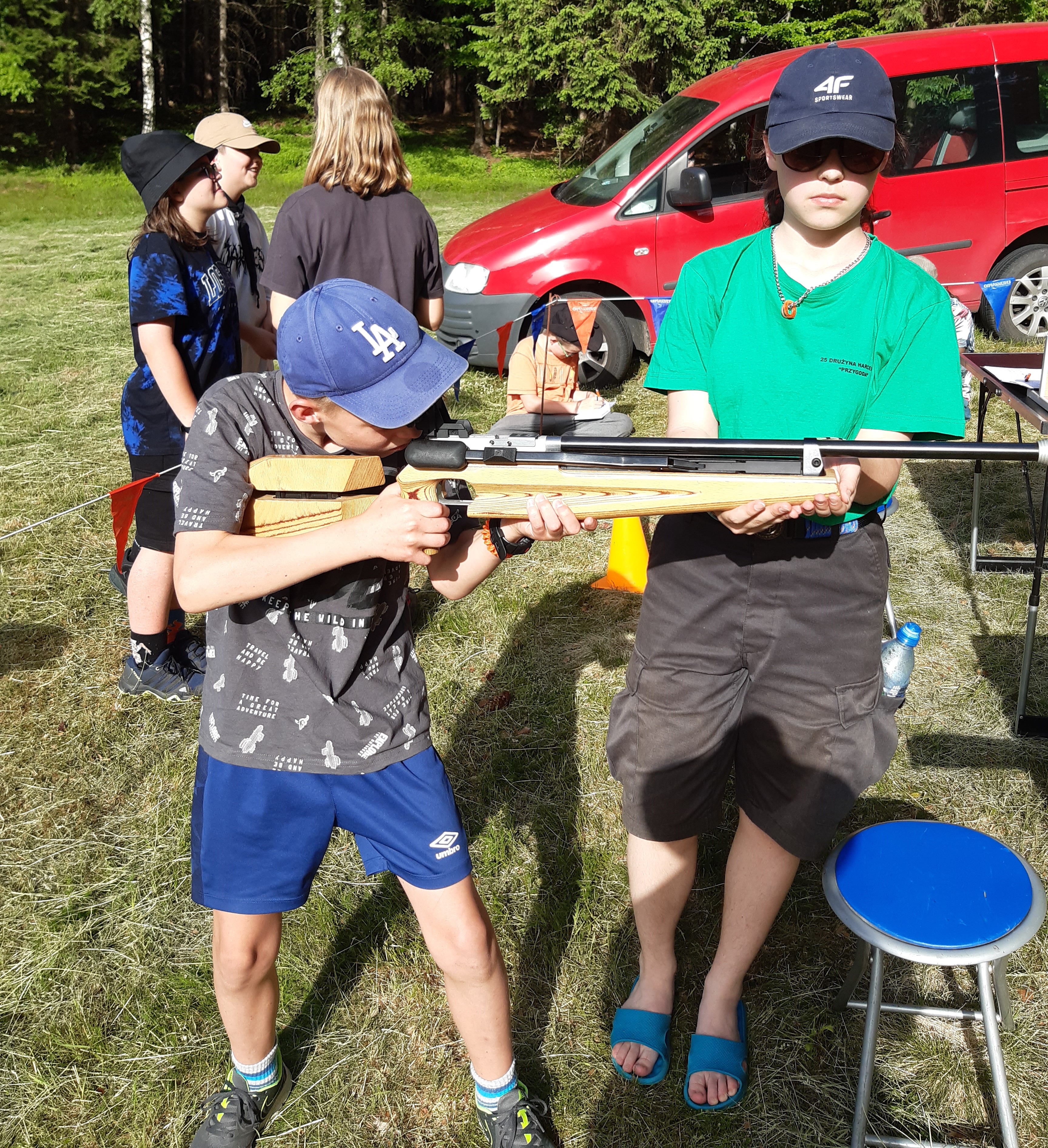 18 czerwca na bazie harcerskiej w Szklarskiej Porębie odbył się turniej strzelecki w konkurencji karabinek pneumatyczny.W konkurencji uczestniczyło blisko 60 zawodników.Na stanowisko strzeleckie przybywały patrole harcerskie które po krótkim wprowadzeniu i zapoznaniu z zasadami bezpieczeństwa i instruktażu strzeleckim rozpoczynały strzelanie do klapek biatlonowych oddalonych na 10m.Każdy zawodnik strzelał 5 strzałów.Do szerokiego finału zakwalifikowało się 19 osób ,które zestrzeliły w eliminacjach po 5 krążków( pozycja siedząc z podpórki).Szeroki finał strzelaliśmy z pozycji stojąc.Do wąskiego finału weszli zawodnicy z największą maksymalną ilością 5 trafień.W finale zawodnicy strzelali do tarcz po 5 strzałów.Tu najlepiej strzelał Bartosz Gumm uzyskując48/50pkt pokonując Hannę Bencal 43/50,trzecie miejsce Martyna Chrobry która pokonała Mateusza Szkołę.5 miejsce zajęli: Oliwia Wójcik i Klaudia Kurpik.