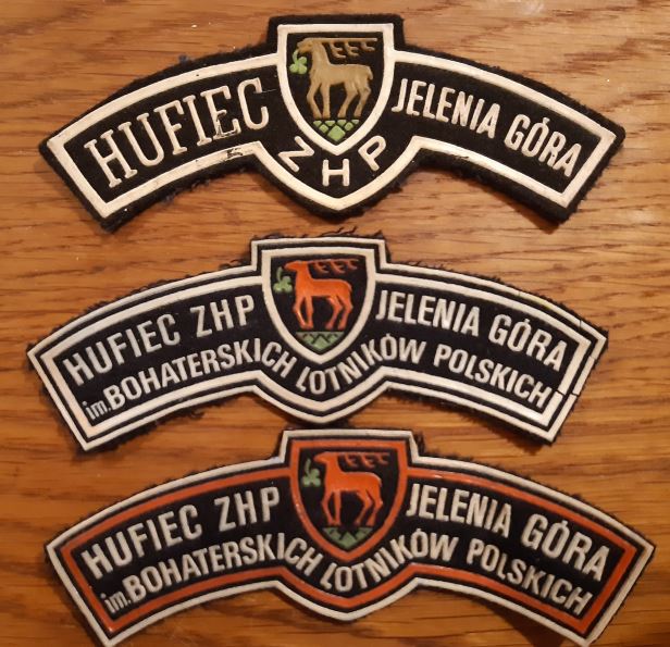 Czas płynie a życzliwych instruktorów przybywa.Dzisiaj hm.Jan Płonka podesłał mi kolejne plakietki z historii hufca Jelenia Góra.W kolejności :od najstarszej do kolejnych z właściwym oznaczeniem po nadaniu imienia Bohaterskich Lotników Polskich.Z czerwonym obramowaniem plakietka dla harcmistrzów - tak miało być ja jak było któż dzisiaj pamięta.