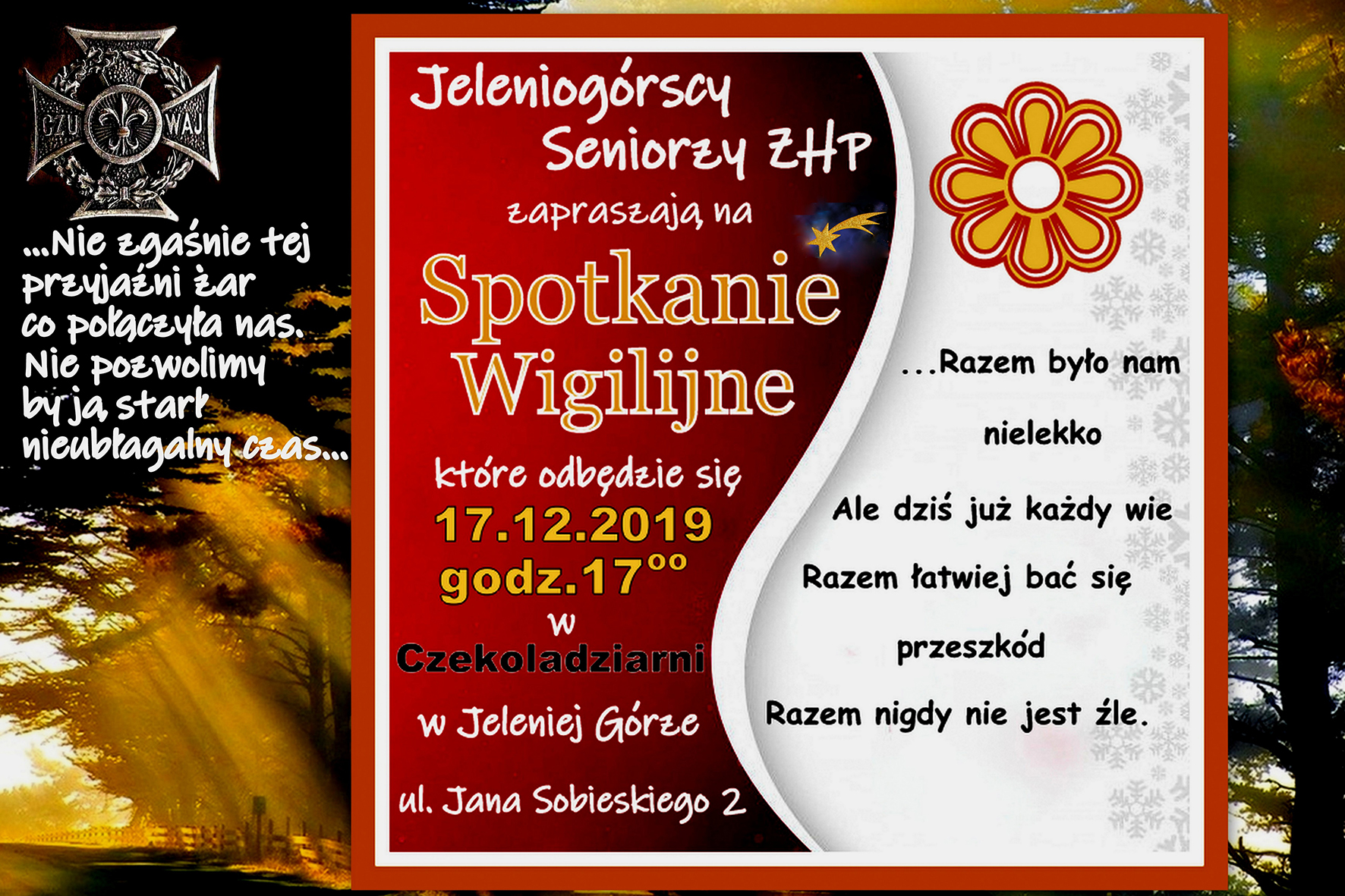 Seniorzy ZHP z Jeleniej Góry serdecznie zapraszają przyjaciół  na wieczór  przedświąteczy.Niech fragment ulubionej piosenki Dh.Danuty Sitek zachęci do wspomnień.