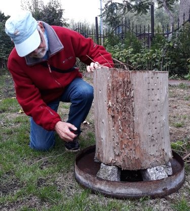 Odpowiadam na liczne pytania- dlaczego moje ulubione ognisko nosi nazwę fińskie?.Bardzo dawno temu mój zaprzyjaźniony instruktor ZHP a potem mój Komendant Hufca-Wrocław Powiat a później drugi Komendant Jeleniogórskiej Chorągwi ZHP uczestniczył w wyjeździe do Finlandii gdzie podpatrzył jak jego przyjaciele przygotowują ognisko. Był to hm.Jan Kiełbowski.Przeniósł tą tradycję na nasze obozy.Byłem w tym czasie harcerzem i jako 15 letni człowiek pierwsze funkcje na obozie pełniłem jako tz.drobny kwatermistrz - pomocnik dorosłego Kwatermistrza hm.Kornela Malinowskiego - obóz w Chełmsku.Źeby ognisko zapłonęło trzeba było znaleźć odpowiedni pień w lesie i po wielu godzinach dłubania przygotować go do palenia.Ognisko niezwykle bezpieczne do palenia w różnych miejscach na wielu zbiórkach instruktorskich.Tak robiło się to w moim hufcu macierzystym .Po latach trafiłem do hufca Jelenia Góra gdzie to dalej kultywowałem. Po wielu latach spotkania instruktorów weteranów wciąż się przy takich ogniskach odbywają .Przygotowałem pięń na ognisko, grupa seniorów zaprosiła na to ognisko instruktorów hufca którzy służyli pod tym sztandarem,