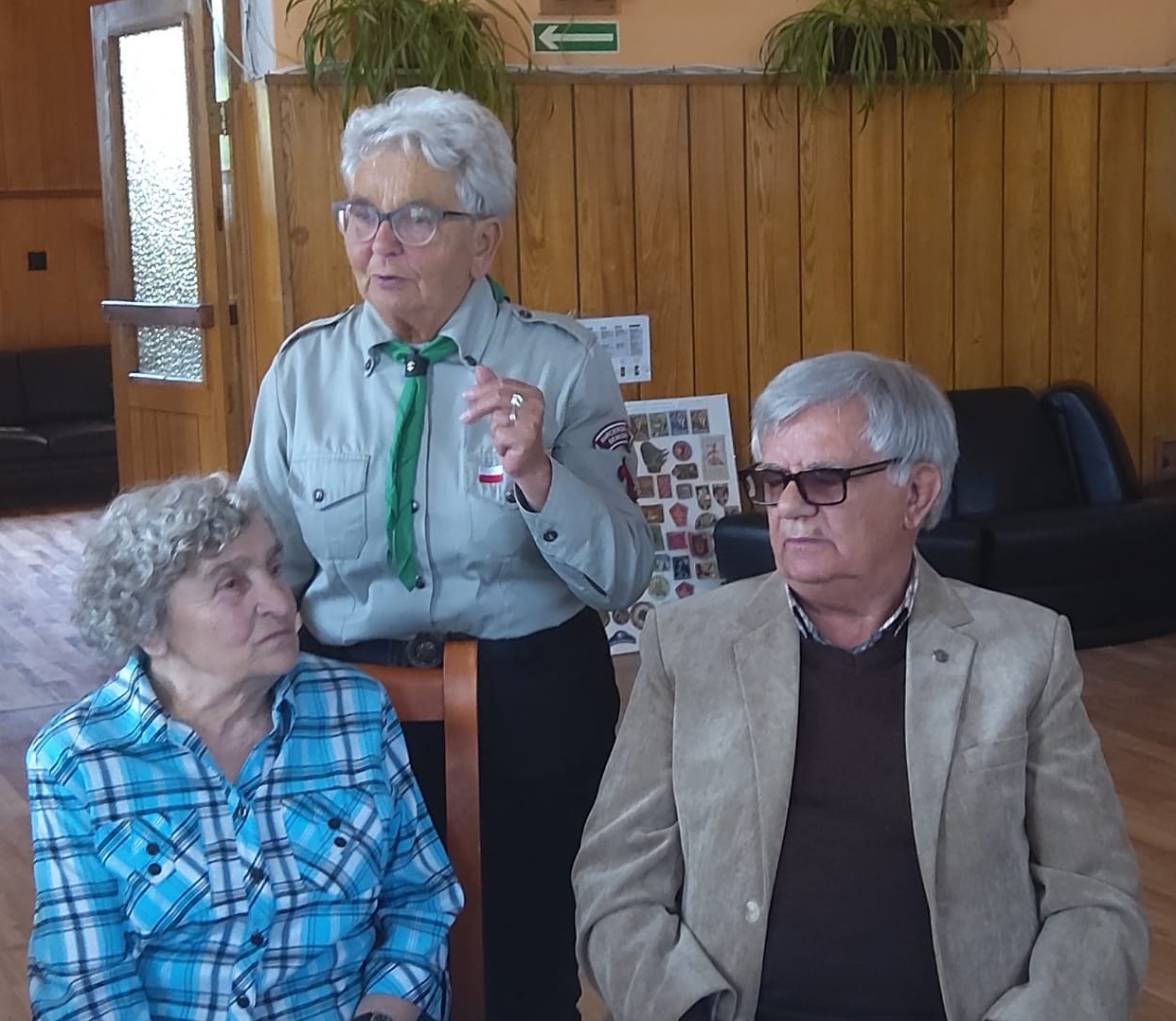 Tu na fotografii w zacnym towarzystwie:Po lewej Jasia w środku Hm.Pl Danuta Sitek po prawej Hm.Pl Adam Solarz na majowym spotkaniu w Karkonoskim Hufcu ZHP.