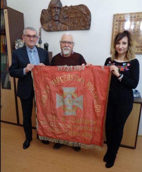 W ramach działań jeleniogórskich instruktorów seniorów i naszej akcji "Ocalić od zapomnienia" Mam dla miłośników historii cudowną informację teraz na szybko.Dzięki ludziom dobrego i szlachetnego serca Pani Annie Szydłowskiej-Robak Dyrektor Zespołu Szkół Rzemiosł Artystycznych w Jeleniej Górze oraz Pana Pawła Domagały Naczelnika Oświaty w Jeleniej Górze, mamy: Sztandar Szczepu Harcerskiego im.Czwartaków działającego w ZHP przy Szkole Rzemiosł Artystycznych w Cieplicach,pożniej Zespołu Szkół Rzemiosł Artystycznych w Jeleniej Górze( po reformie administracyjnej) obecnie Jeleniej Górze.Poniżej uroczyste przekazanie sztandaru oraz kroniki przez Panią Annę Szydłowską-Robak Dyrektor Zespołu Szkół Rzemiosł Artystycznych w Jeleniej Górze na ręce dh.hm.Andrzeja Gawłowskiego i dh.Hm.PL Janusza Milewskiego do zbiorów archiwalnych i naukowych pierwsze szybkie fotki.