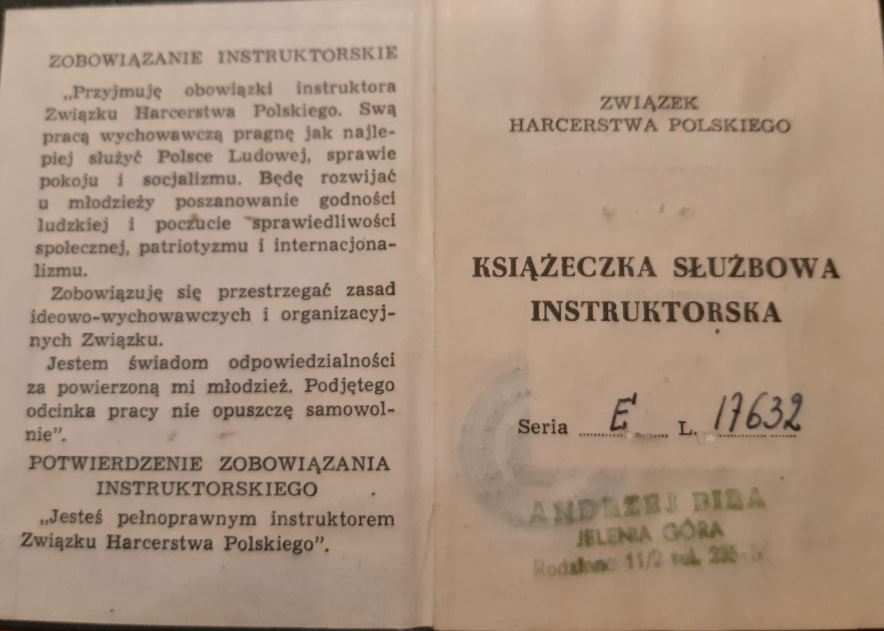 Do naszych zbiorów dotarło kilka wspaniałych artefaktów od dh.hm.Andrzeja Biry.Są to jego osobiste dokumenty.Dziękujemy i prosimy o jeszcze.