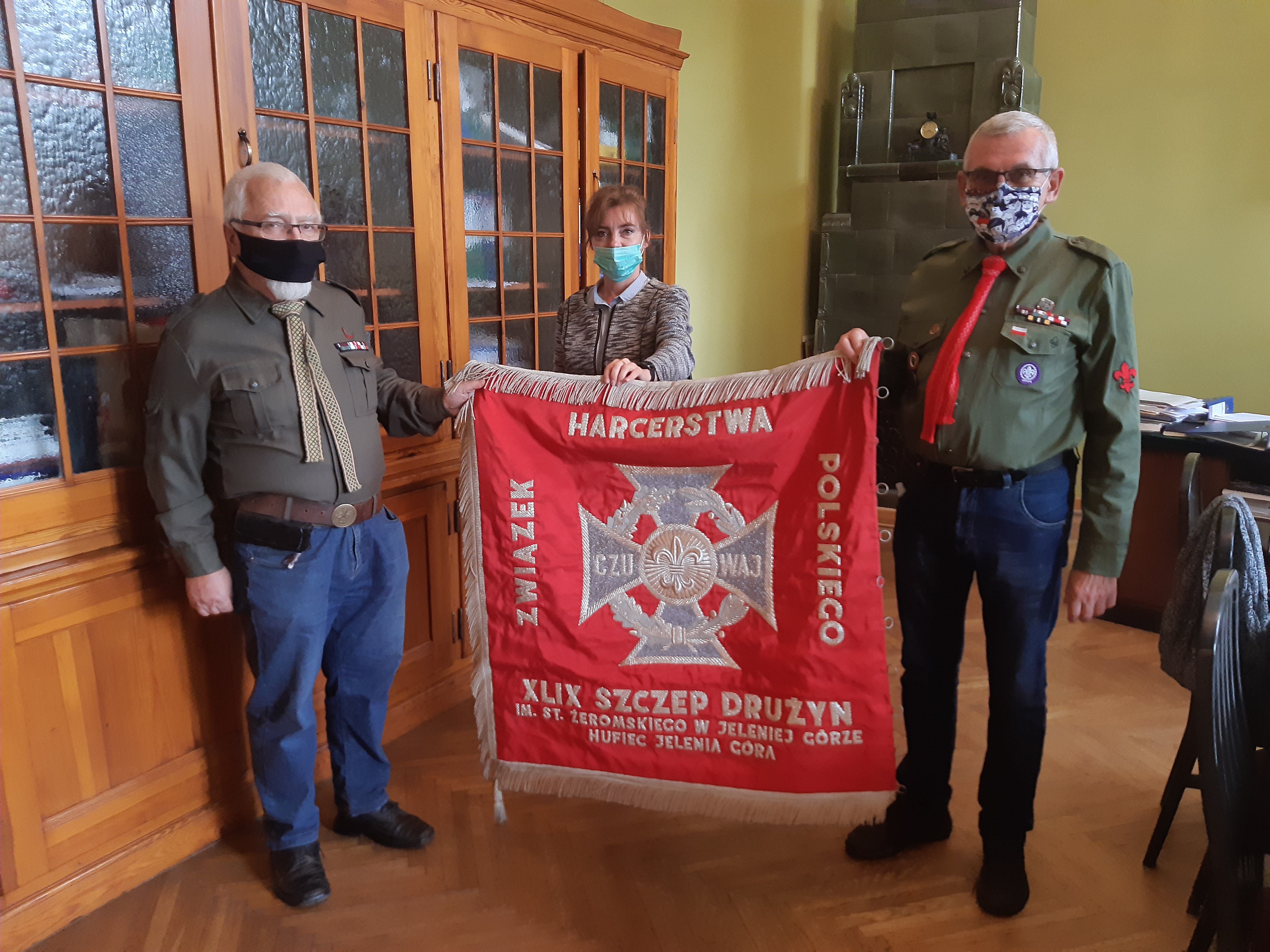 9.10.2020r do naszych zbiorów dołączył sztandar XLIX Szczepu Drużyn im.Stefana Żeromskiego.Sztandar na ręce Komisji Historycznej Karkonoskiego Hufca ZHP przekazała Pani mgr Małgorzata Kozińska Dyrektorka I LO im.Stefana Żeromskiego w Jeleniej Górze.